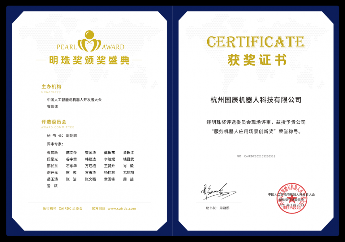國辰公共服務機器人榮獲CAIRDC丨2021年“明珠獎”